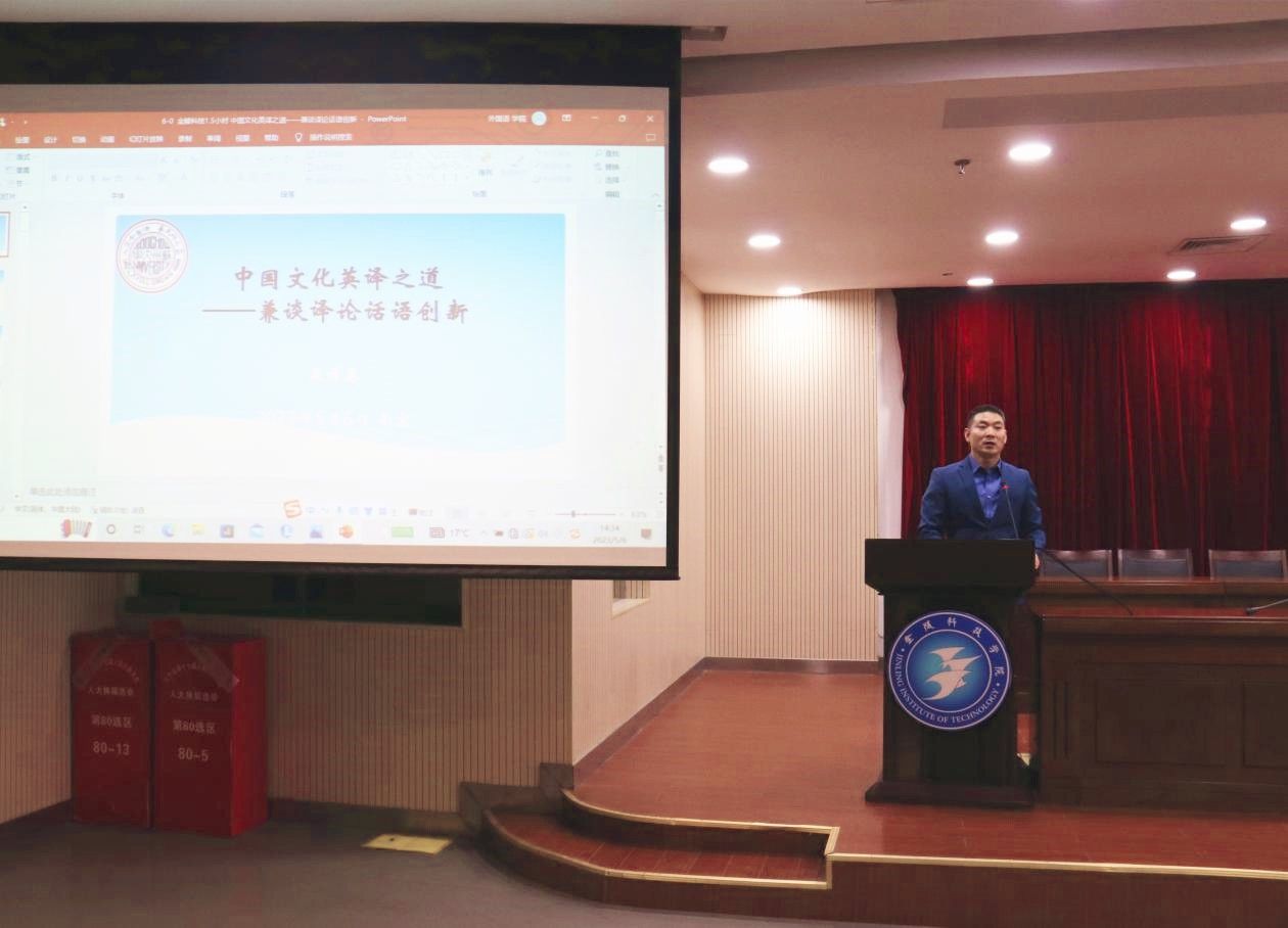 5月6日,由科技处、教师发展中心主办,外国语学院承办的第十一期“金科学术讲堂”在图书馆第二报告厅顺利开讲。本次学术课堂特邀苏州大学外国语学院副院长孟祥春教授作题为《中国文化英译之道——兼谈译论话语创新》的学术报告,约300名师生参加。我校外国语学院副院长李凤主持本次讲座。