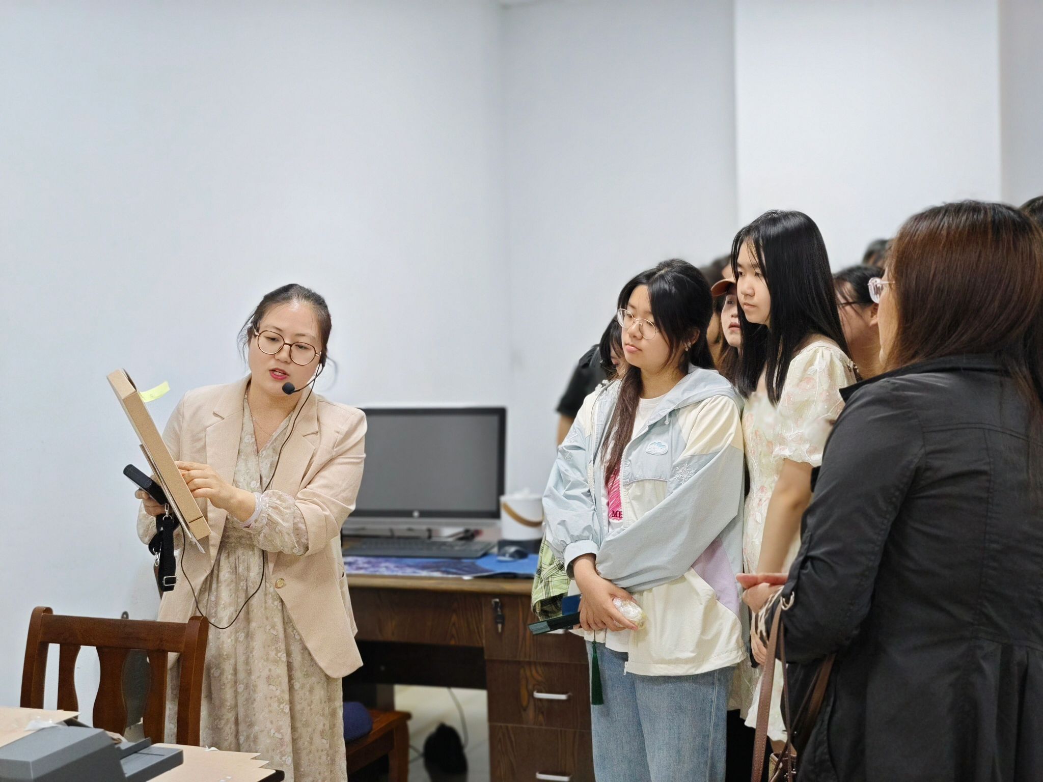 本次活动带领师生们实地参观了档案库房,近距离接触了档案实体,观摩了档案归档和利用的全部流程。姜爱萍详细讲解了档案馆的基本情况、空间布局、功能定位、馆内设备、数字化建设情况等,介绍了档案管理的流程和保存技术,展示了丰富的馆藏和现代化的库房温湿度管理系统。解鸣现场演示了档案管理系统的使用,让学生们体验了我校档案信息化建设成果。在互动环节,学生们积极参与交流和答题,现场气氛活跃。