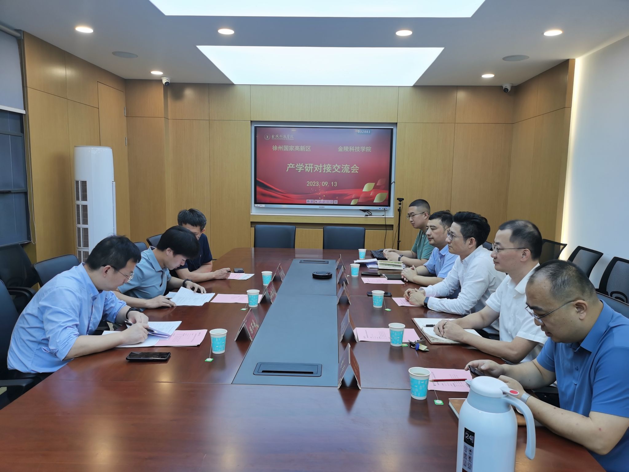 刘磊代表学校对徐州国家高新区科技局人员来校开展产学研对接表示欢迎,并就学校学科专业布局和产学研工作开展情况做了详细介绍。孙张辰子介绍了徐州国家高新区的重点产业布局和发展规划,并重点分析了37家驻区企业的产学研合作需求,表示愿与我校科研团队开展长期对接合作。
