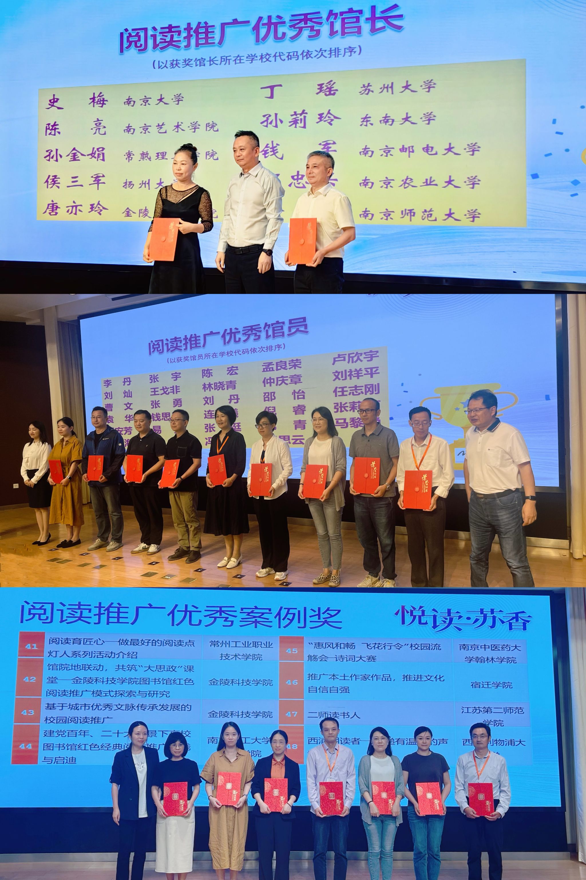 在本次交流会上,颁发了由江苏省高等学校图书情报工作委员会组织评选的江苏省高校图书馆阅读推广“优秀案例”“优秀馆长”“优秀馆员”。我校图书馆申报的《馆院地联动,共筑“大思政”课堂——开云在线图书馆红色阅读推广模式探索与研 究》和《基于城市优秀文脉传承发展的校园阅读推广》获评江苏省高校图书馆阅读推广优秀案例,唐亦玲获评江苏省高校图书馆阅读推广优秀馆长,张贤获评江苏省高校图书馆阅读推广优秀馆员。