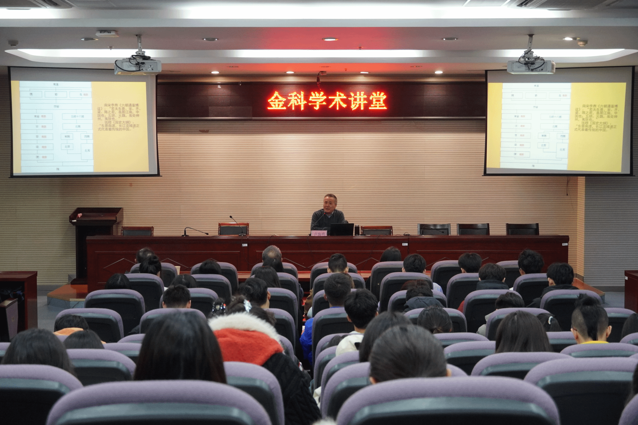 11月15日,由科技处、教师发展中心主办,人文学院承办的第二十三期“金科学术讲堂”在幕府校区图书馆报告厅顺利开讲。本次学术讲堂特邀南京出版社社长卢海鸣作题为《别样的南京》的学术报告,近200名师生参加。人文学院院长张维亚教授主持本次讲座。