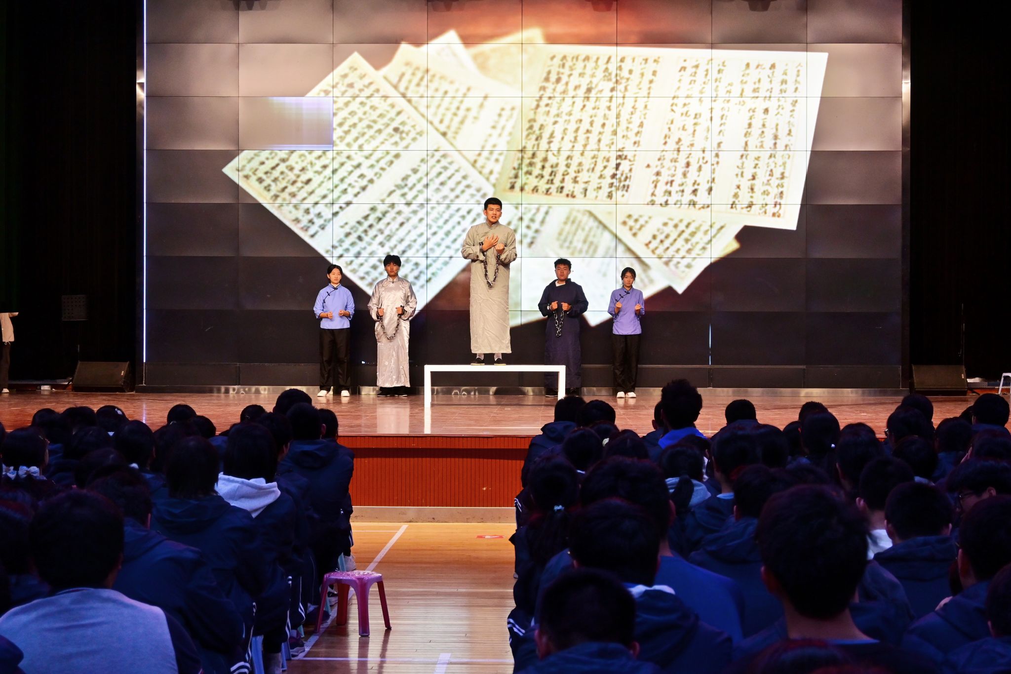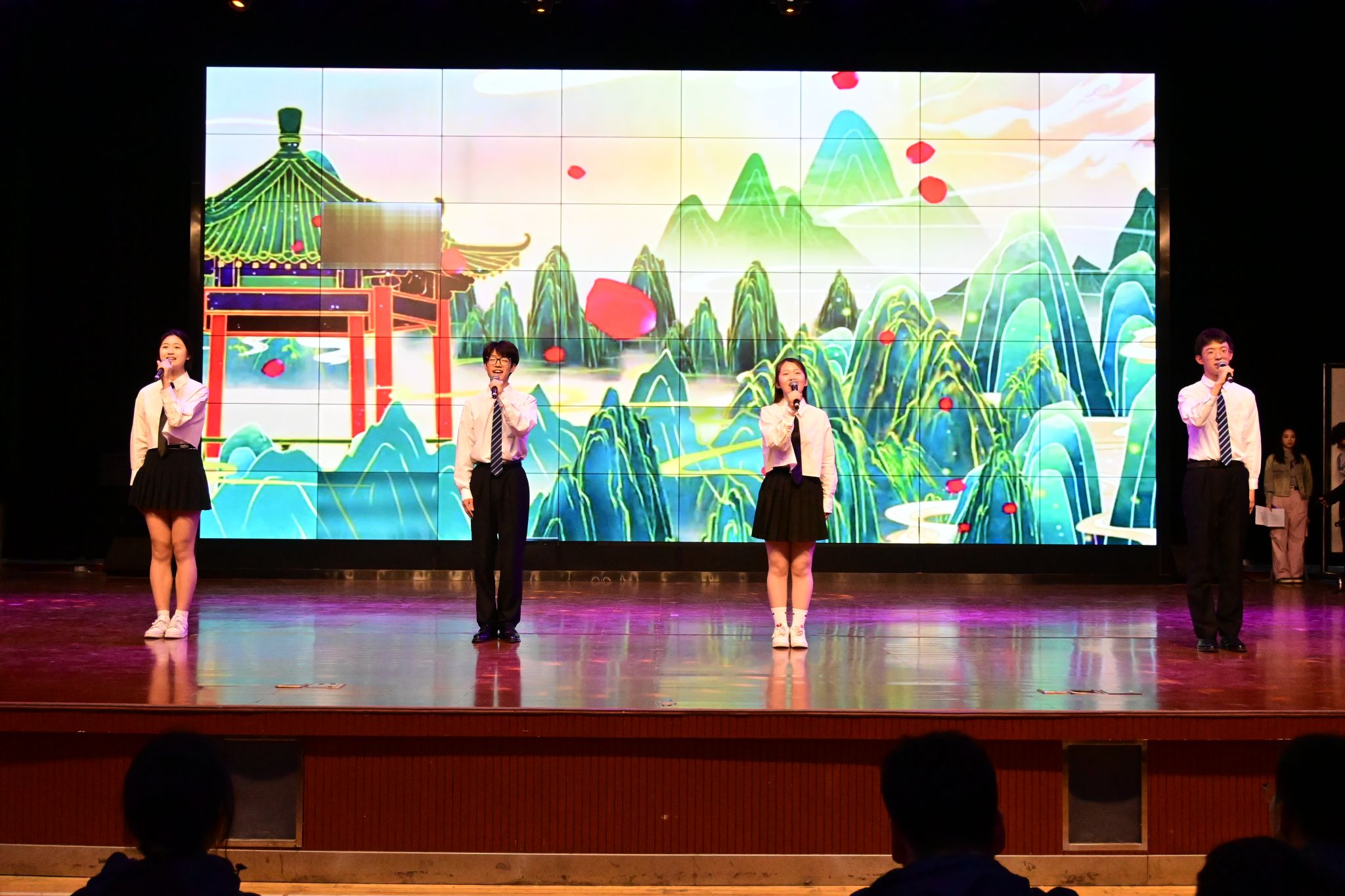 艺术团为800多名高中学子带来了1个多小时的精彩表演,台上演的用心,台下看得入神,在歌舞环节,同学们纷纷拿打开手机闪光灯与演员互动齐唱。在观看我校原创红色话剧《信仰之光》时,他们眼眶湿润,被雨花英烈的精神和信仰深深的打动。同时艺术团还带来了器乐表演《兰亭序》《狮子王》等,整场演出在合唱《彩虹》中落下帷幕。