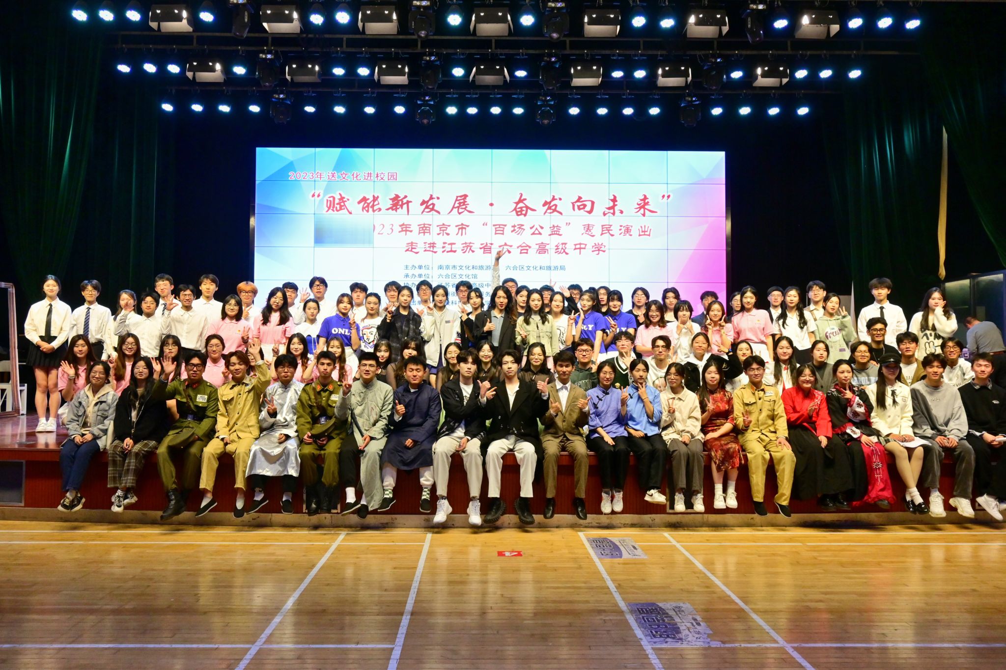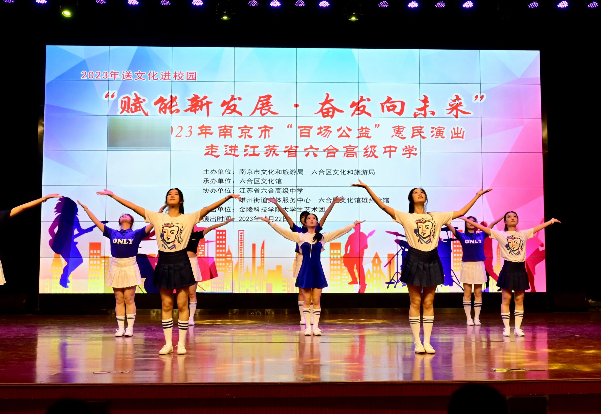 11月22日,我校大学生艺术团赴江苏省六合高级中学进行“赋能新发展,奋发向未来”——2023年南京市“百场公益”惠民演出。此次演出是由南京市文化和旅游局、六合区文化和旅游局主办,六合区文化馆承办,同时也是我校大学生艺术团作为“南京市五星级群众文艺团体”以来,首次走进高中,进行“高雅艺术进校园”演出。