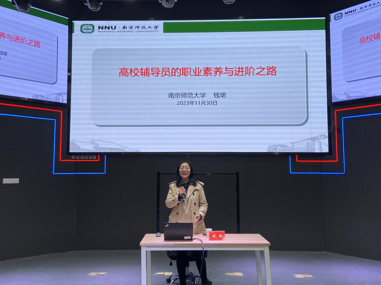 为深入学习贯彻习近平新时代中国特色社会主义思想及党的二十大精神,进一步聚焦辅导员主责主业,深耕专业成长,切实推动我校学生工作提质增效,11月30日下午,我校在江宁校区7100举办辅导员素质能力提升专题培训,此次培训特邀南京师范大学新闻与传播学院研究生辅导员钱珺副教授作专题讲座。各学院分管学生工作副书记、全体辅导员参加培训。党委学生工作部部长汪如春主持会议。