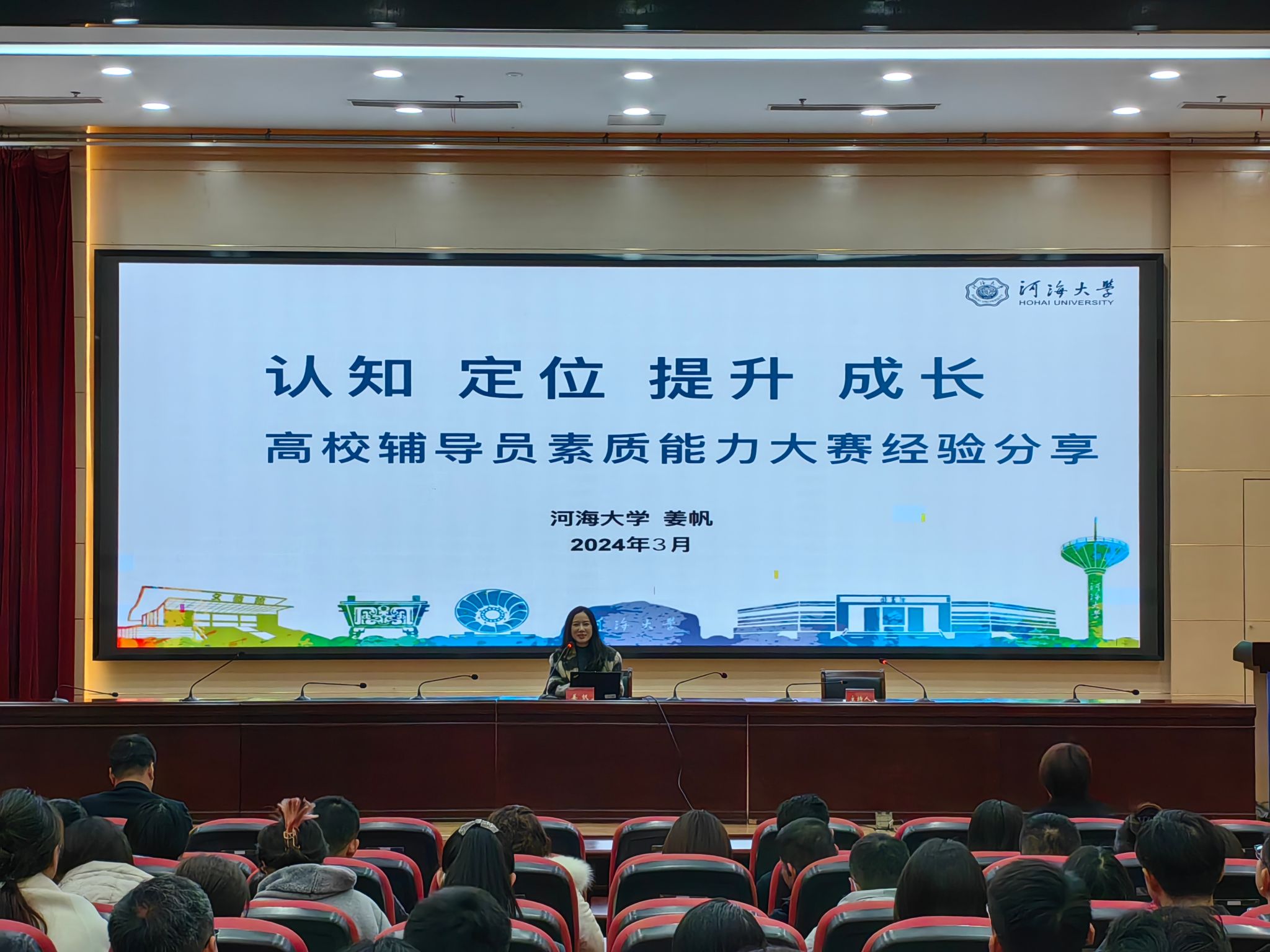 3月18日上午,我校在江宁校区科技楼报告厅开展2024年第一期辅导员素质能力提升专题培训。此次培训特邀河海大学辅导员、全国高校辅导员素质能力提升骨干训练营“十佳标兵”姜帆作专题讲座,各二级学院副书记、全体辅导员参加培训。学生工作处副处长王姝主持会议。