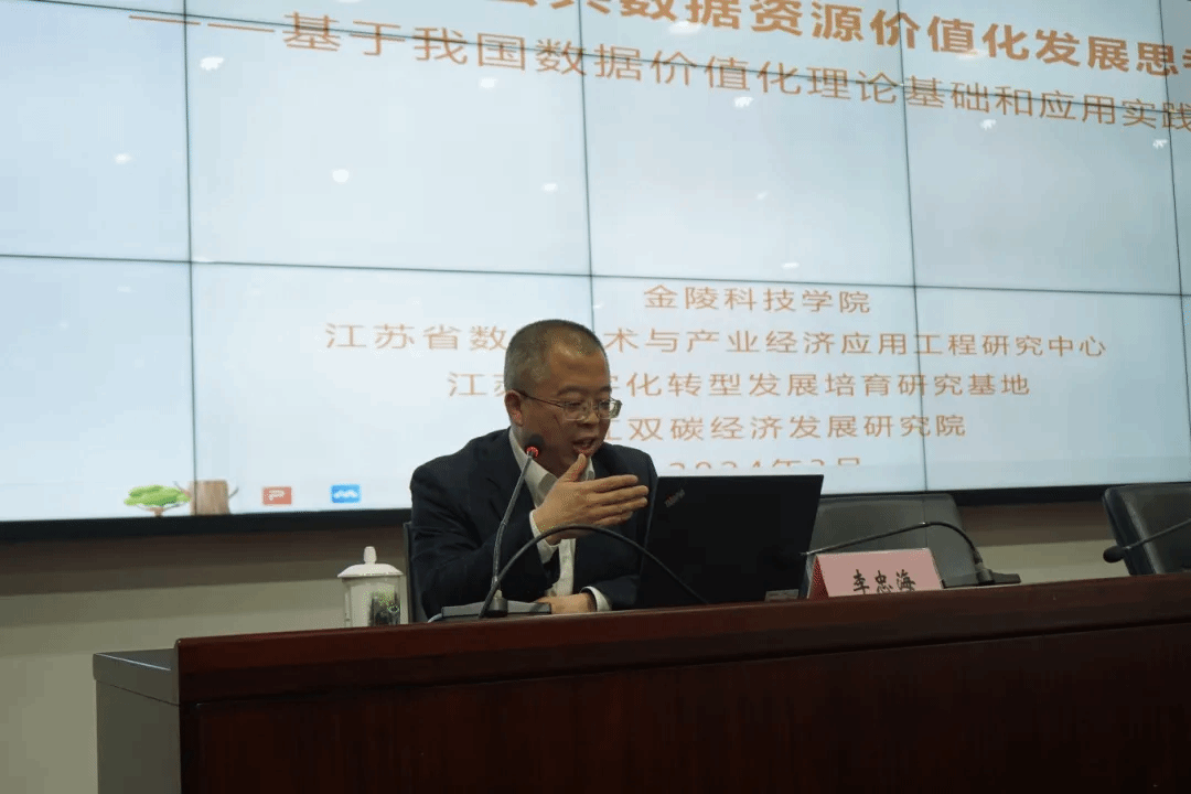 我校商学院李忠海副教授作专题讲座,着眼我国数字经济发展的“五位一体”理论框架,立足全市建设具有全球影响力的产业科技创新中心主承载区和实施“产业强市”战略,阐释了数据资源价值化的基本逻辑、关键路径和重点领域,重点围绕新质生产力加快发展、“3+N”政务数据资源开发、科技型主体评级平台和“产-科-创”一体库等方面,提出南京加快公共数据资源价值化的初步思路和基本构想。