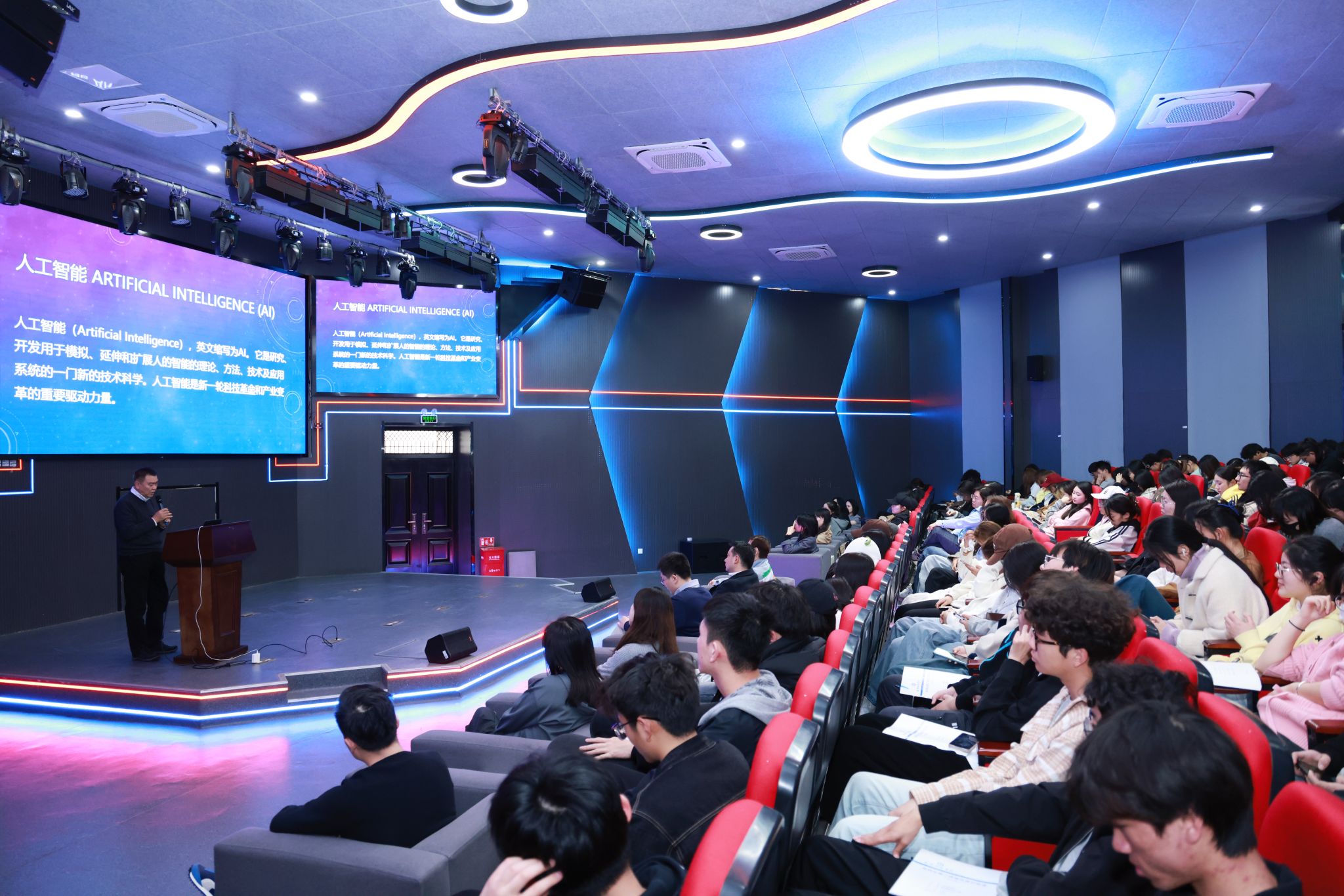 刘谦围绕“AI技术”“数字影像”等主题展开,对AI技术的底层逻辑和技术趋势、数字影像的特点和制作技术、AI对数字影像影响和挑战等方面进行了全面解析。人工智能已经广泛应用于电影制作中分镜脚本、后期特效制作等数字影像等流程中,对于提高生产效率、提高创作水平具有一定的辅助作用。他认为,在未来的发展中人类的情感和创意仍然是核心竞争力,作为数字创意类专业的设计师,学生在主动拥抱新技术的同时,应该更加注重自身审美能力的提升。