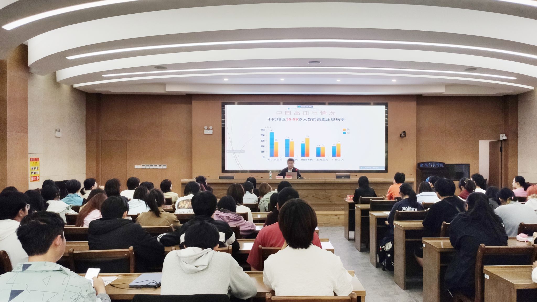 张代民主任医师结合典型病例,运用丰富的图片资料和数据,重点讲解了高血压、高血脂、糖尿病等常见严重心血管疾病的医学诊断、流行病学概况、主要危害和防治方法,详细介绍了冠心病的临床特点、危险因素和治疗方法,并在健康生活方式和合理用药方面给出了具体的建议。活动现场,张代民主任医师与师生进行了互动交流,耐心地解答了大家的相关咨询。
