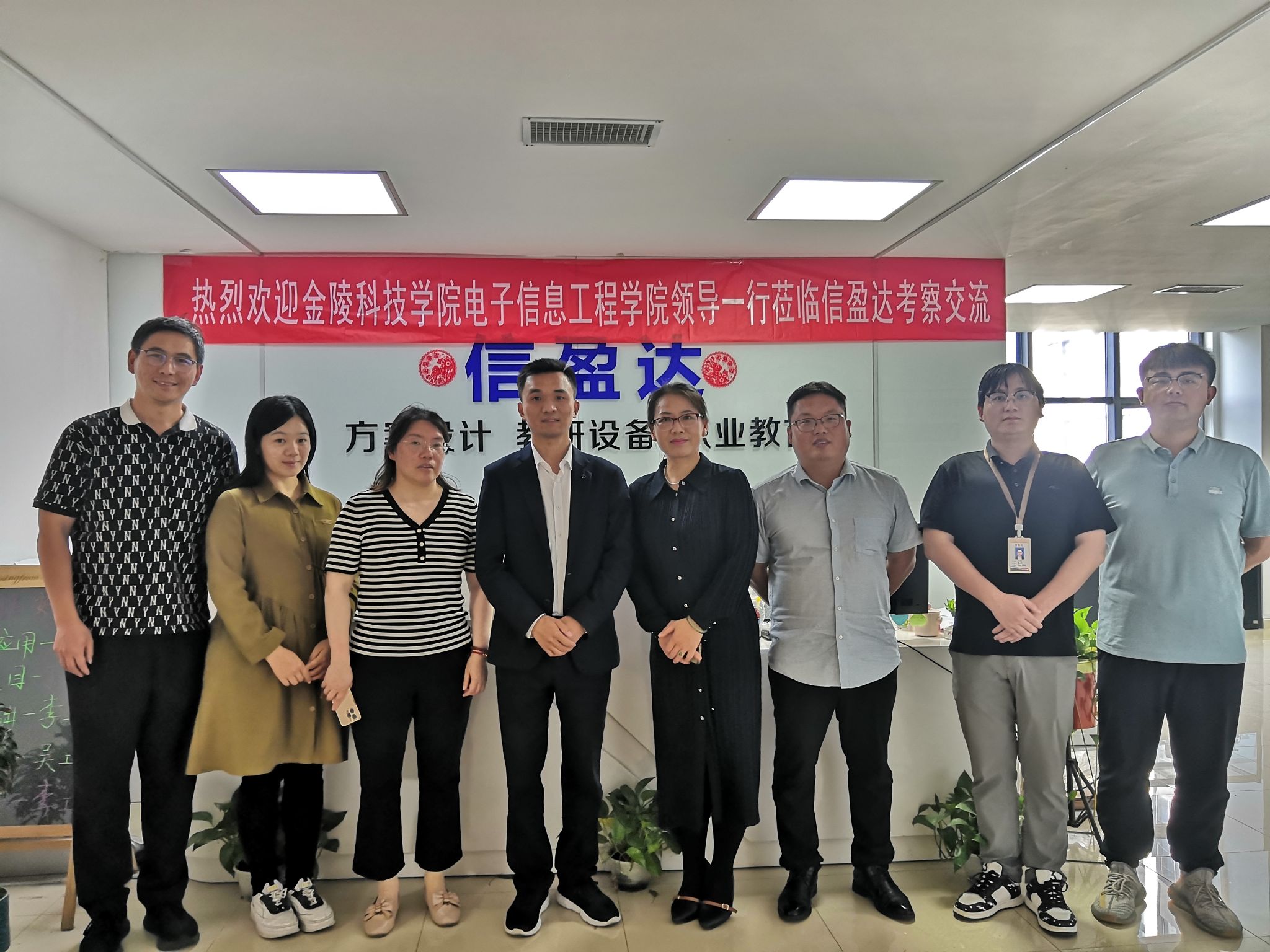 为进一步促进校企合作,深化产教融合,积极开拓学生就业渠道,5月16日下午,电信学院党委副书记陈智慧、副院长杨娟率信息工程系副主任牛犇、房玉琢和系骨干教师王文秀、辅导员兼就业干事征文维赴深圳信盈达科技有限公司南京中心进行访企拓岗,深圳信盈达科技有限公司华东区域经理李志、副经理吴成宇、教研部主管丁伟等热情接待了陈智慧一行。