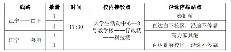 根据学校工作安排,为保障校第三次党员代表大会与会代表出行,计划于9月29日17:30增发4辆班车,具体安排如下: