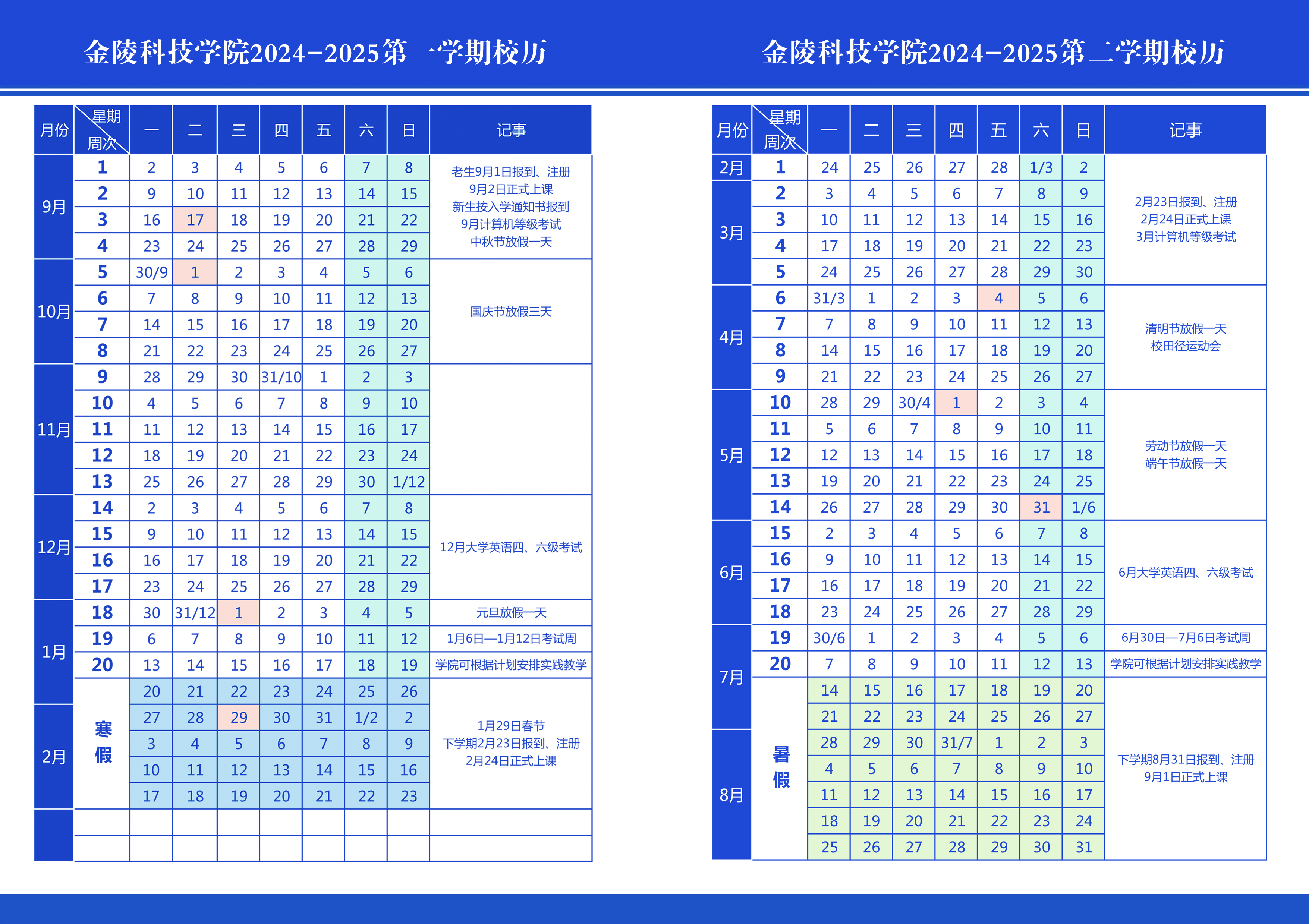 2024-2025学年校历