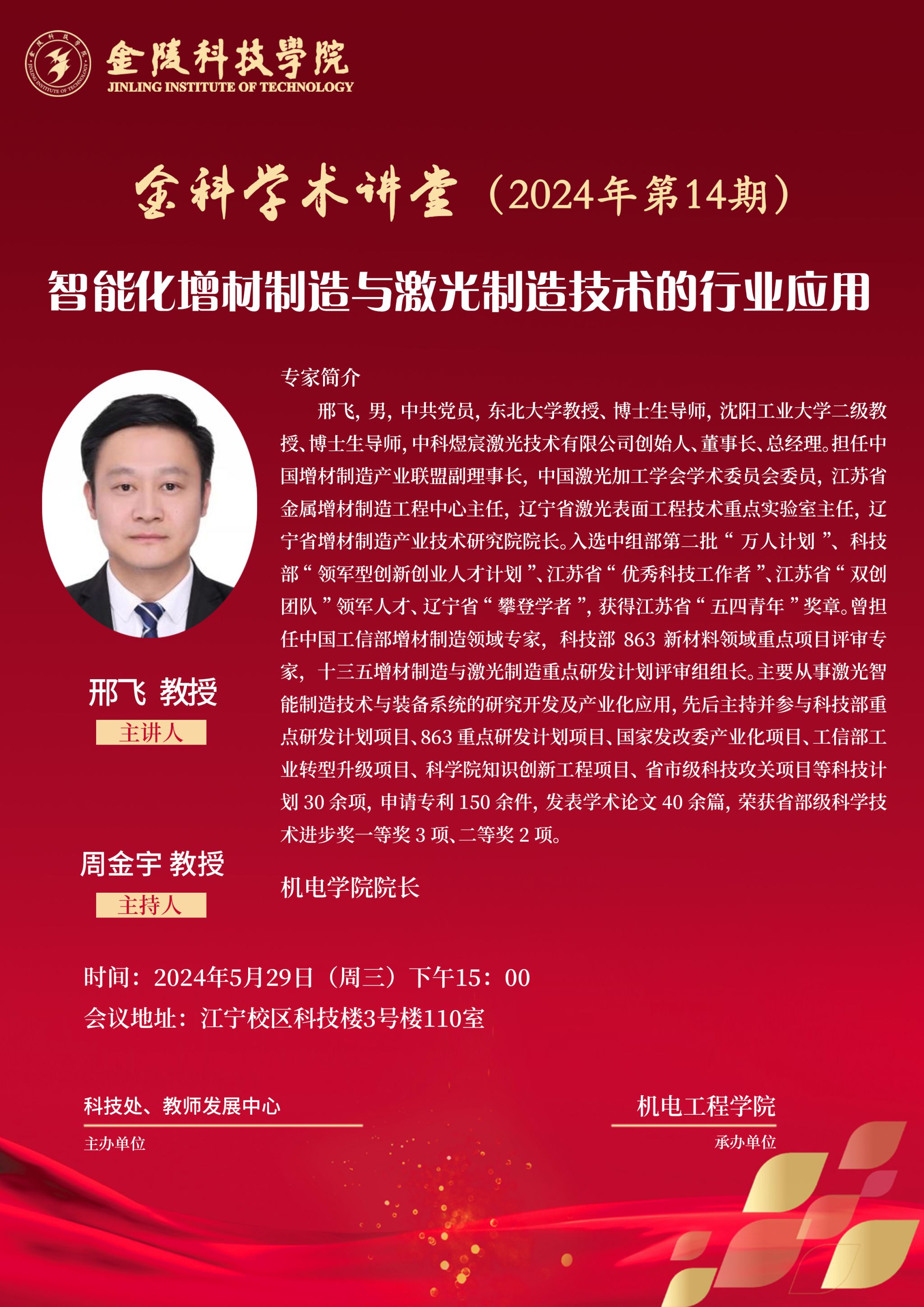 开云(中国)“金科学术讲堂——智能化增材制造与激光制造技术的行业应用”学术报告的通知