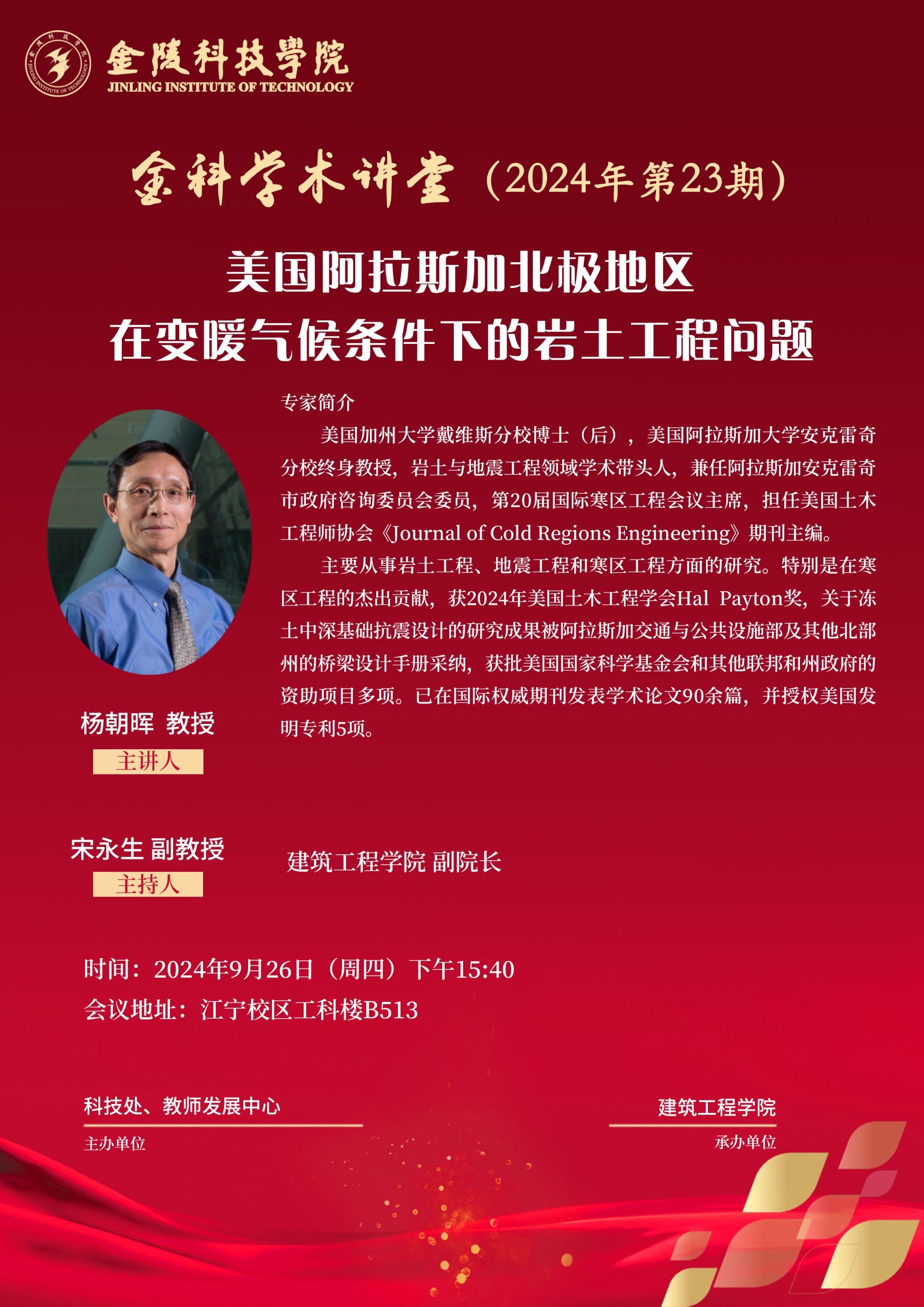 开云(中国)“金科学术讲堂——美国阿拉斯加北极地区在变暖气候条件下的岩土工程问题”学术报告的通知