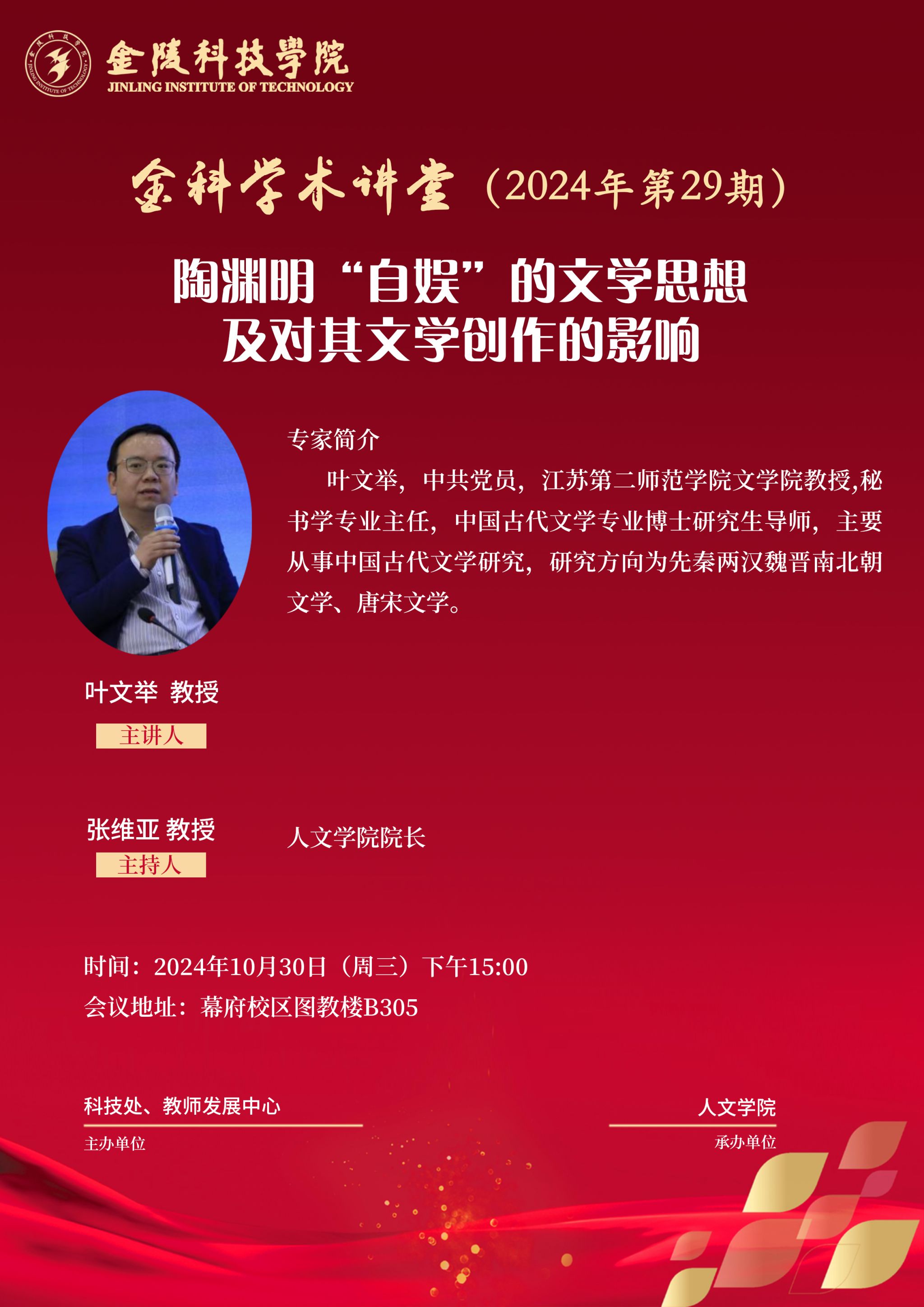 开云(中国)“金科学术讲堂——陶渊明“自娱”的文学思想及对其文学创作的影响”学术报告的通知