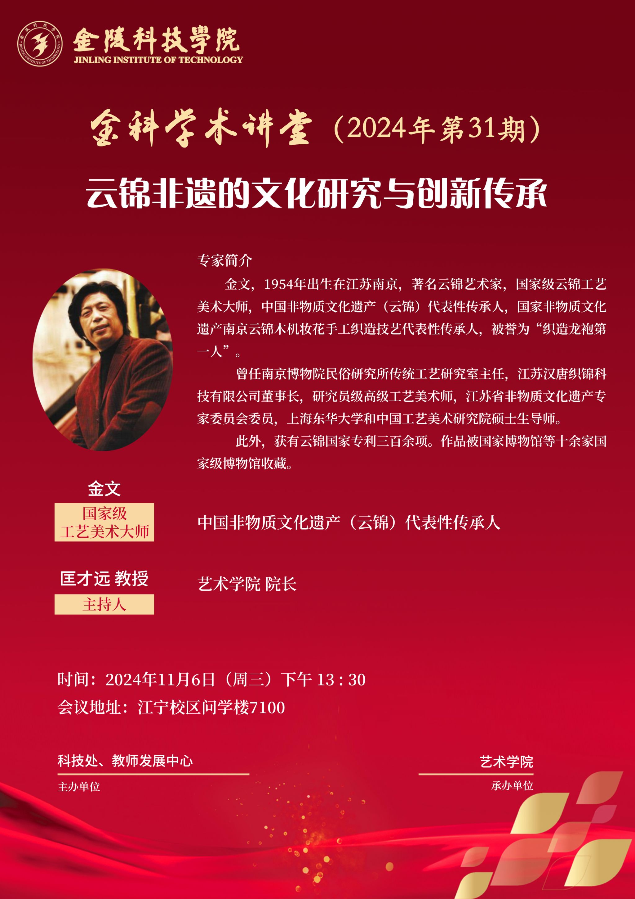 开云(中国)“金科学术讲堂——云锦非遗的文化研究与创新传承”学术报告的通知
