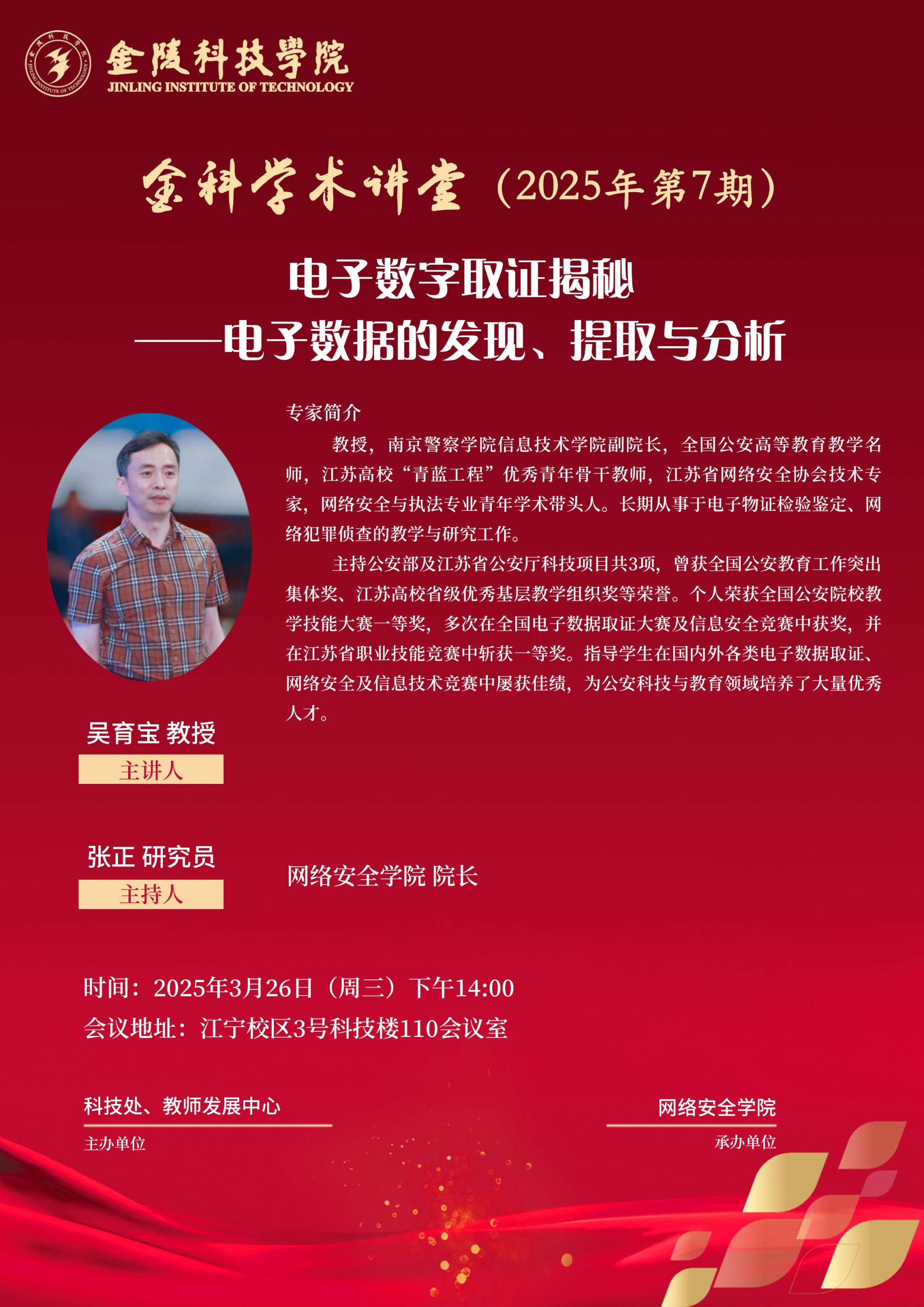 开云(中国)“金科学术讲堂:电子数字取证揭秘——电子数据的发现、提取与分析”学术报告的通知