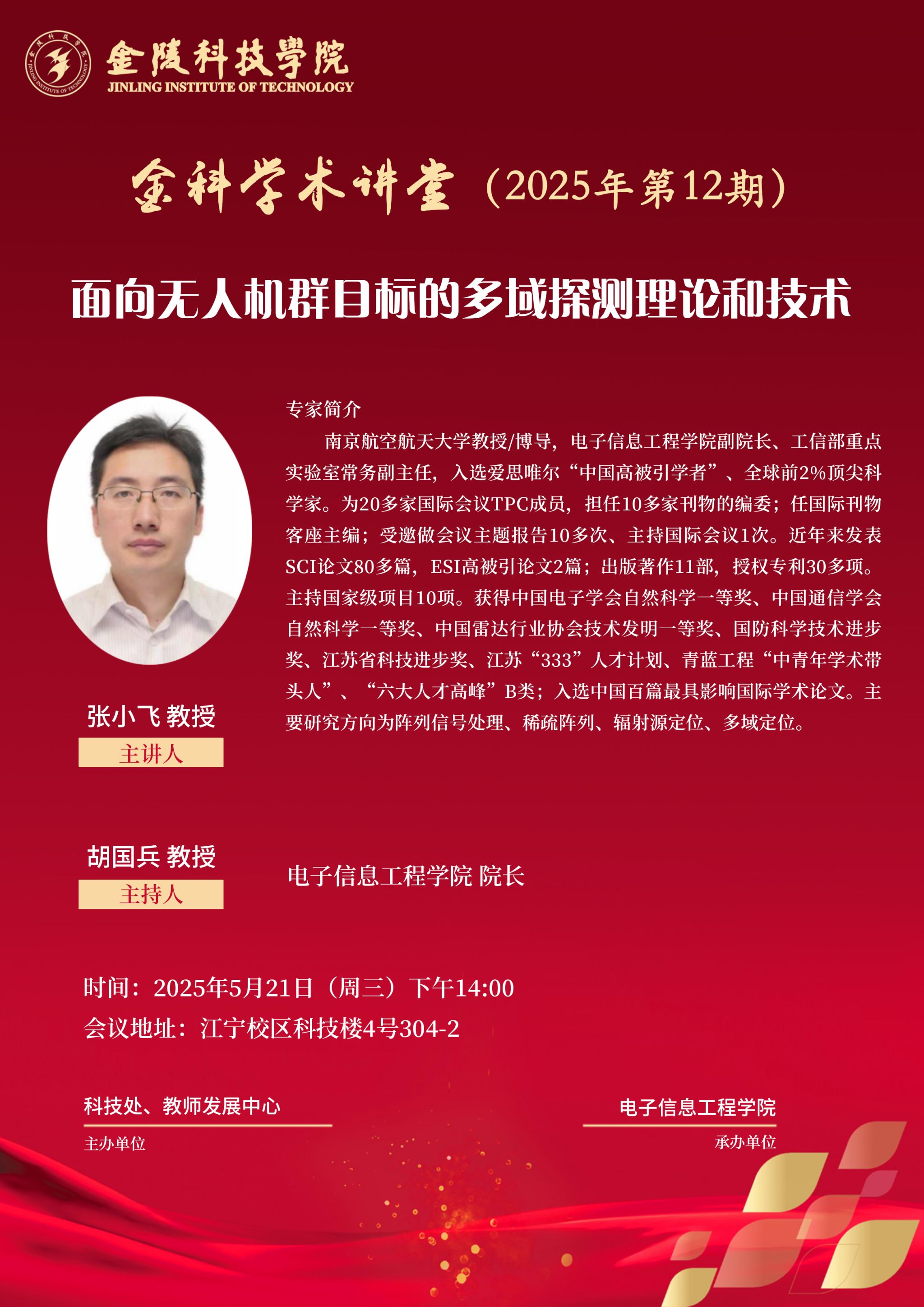 开云(中国)“金科学术讲堂——面向无人机群目标的多域探测理论和技术”学术报告的通知