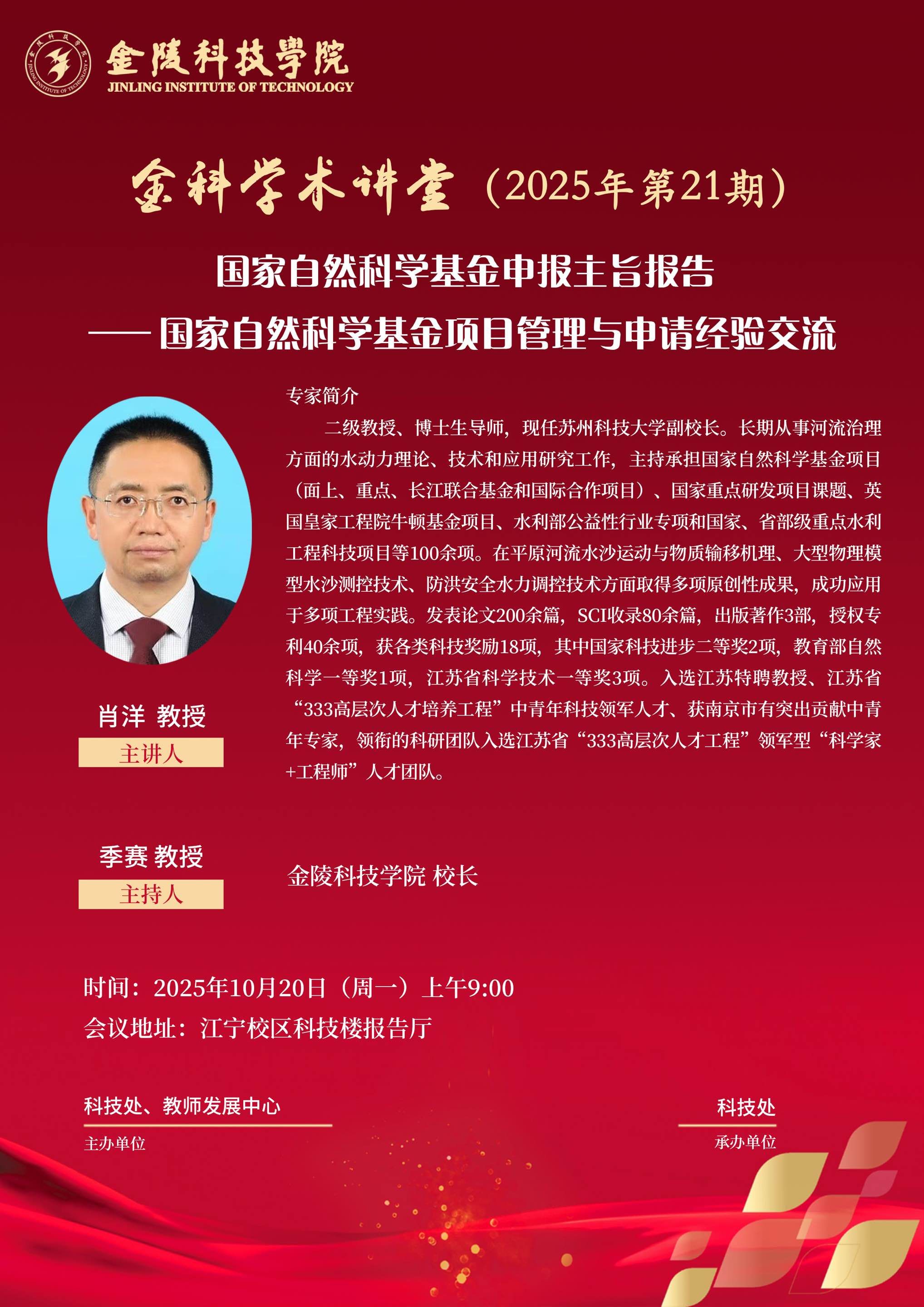 开云(中国)“金科学术讲堂:国家自然科学基金申报主旨报告——国家自然科学基金项目管理与申请经验交流”学术报告的通知