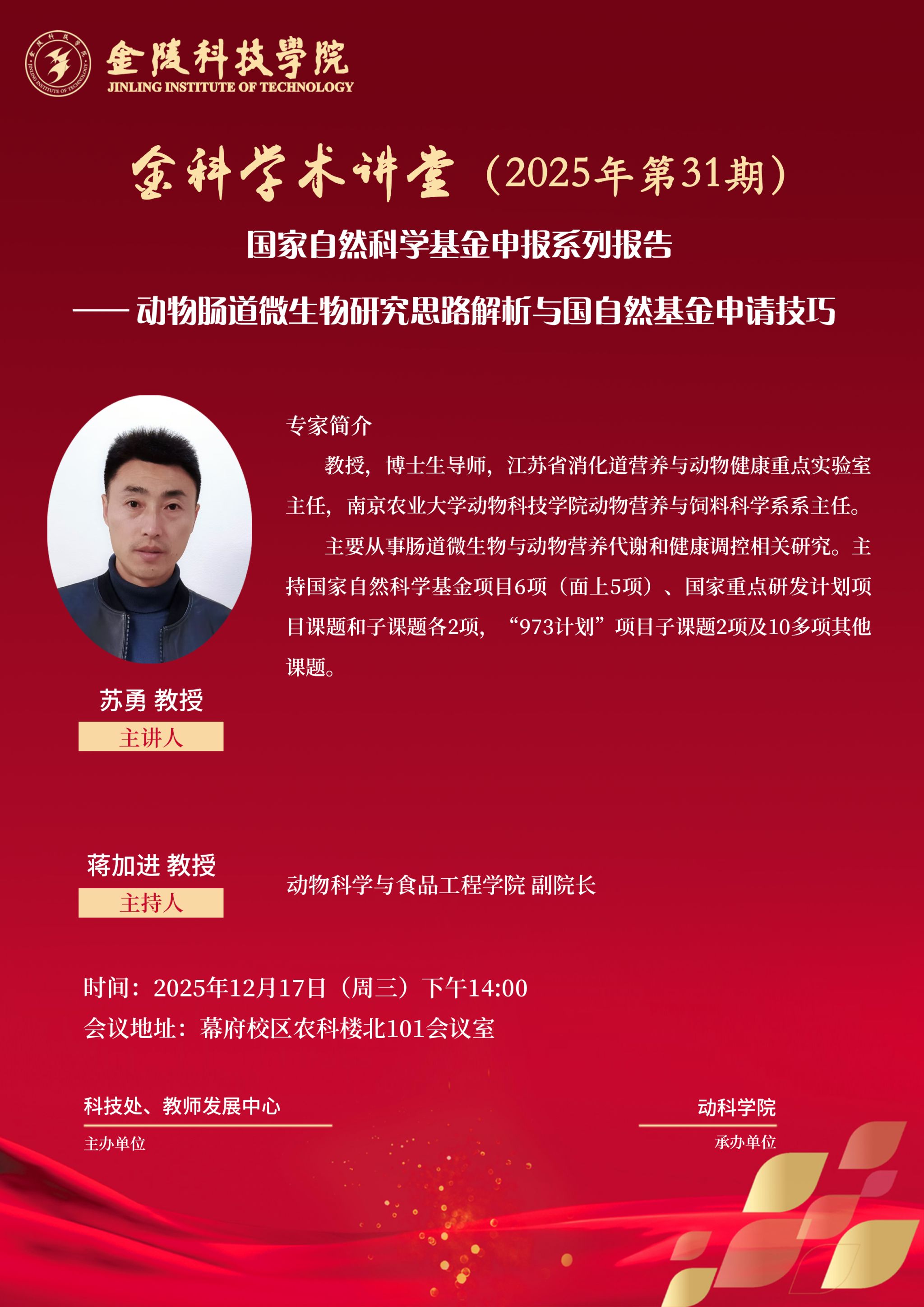 开云(中国)“金科学术讲堂:国家自然科学基金申报系列报告——动物肠道微生物研究思路解析与国自然基金申请技巧”学术报告的通知